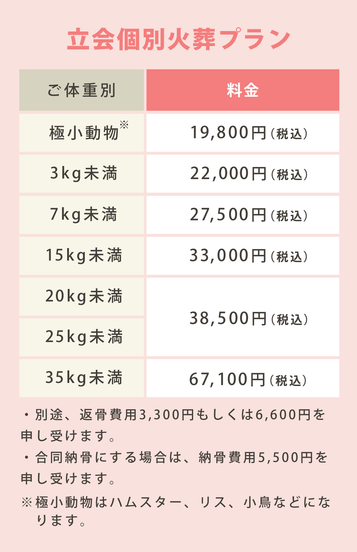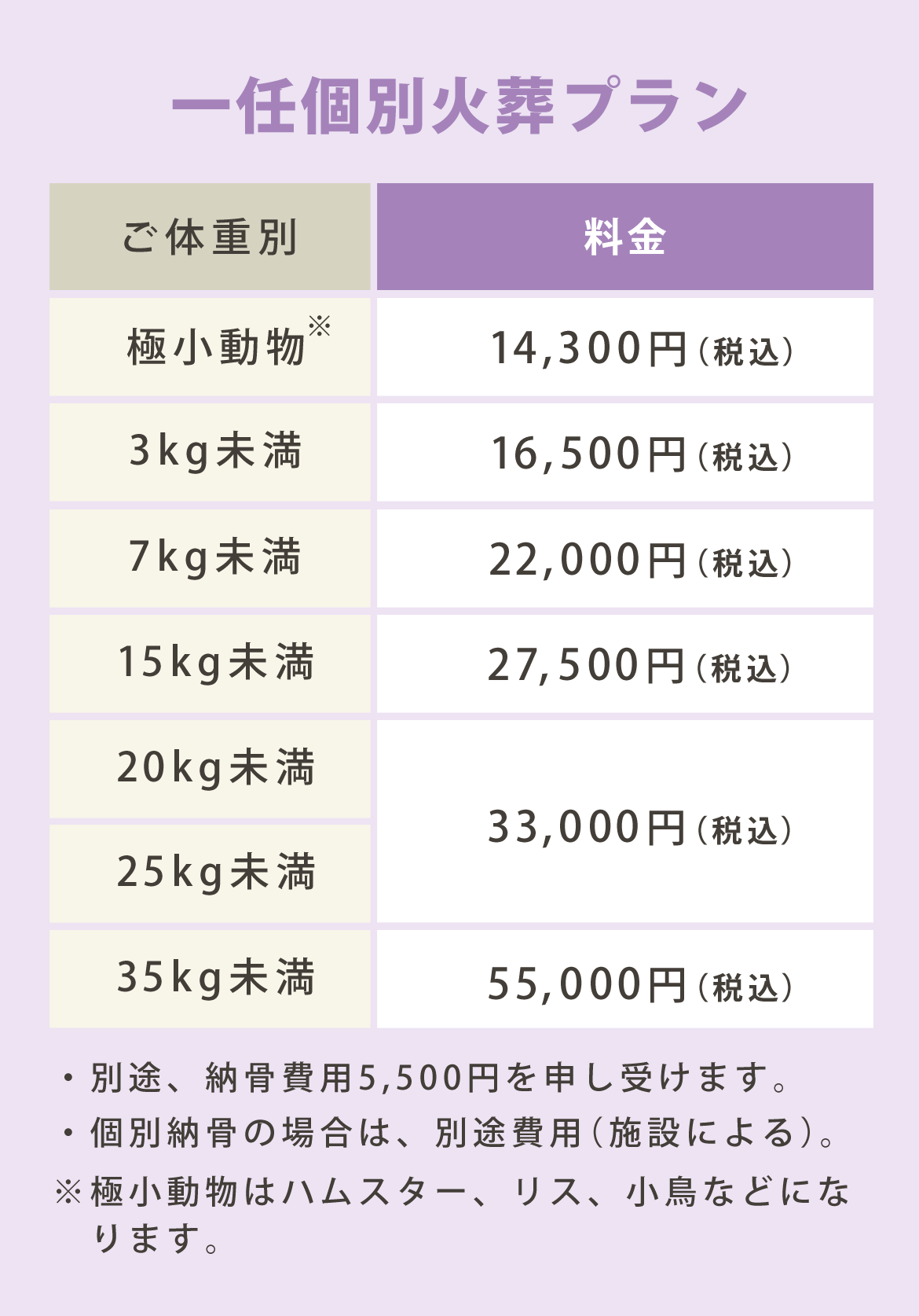 お問い合わせの際には、ペットの種類、年齢、大きさ、ご火葬後のお骨をお手元に残すか、ご希望の火葬日時などをお知らせいただけるとスムーズです。詳細がわからない場合でも、お気軽にご相談ください。
